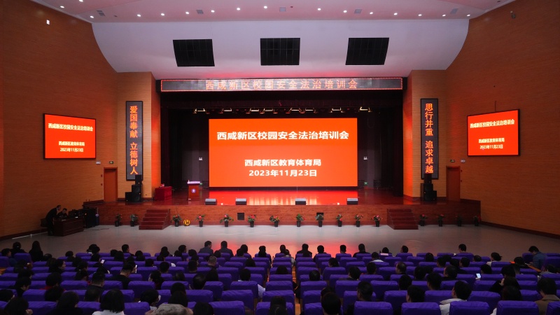 11月23日下午,西咸新区教育体育局在秦汉中学举办了全区校园安全法治培训会。西咸新区管委会教育总督学张劲光出席会议并讲话。局督导安稳部部长及业务负责同志、各新城工作部分管副部长及业务负责同志、新区各级各类学校校(园)长共400余人参加会议。