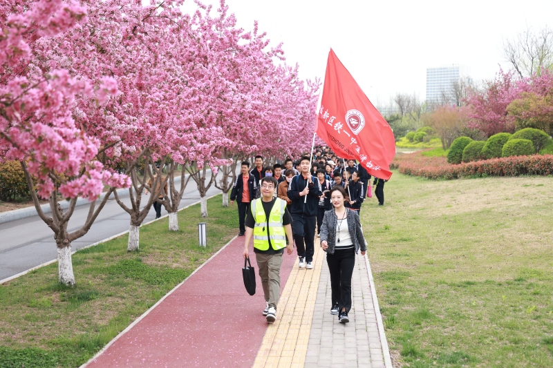 西咸新区铁一中金湾中学组织初一年级全体师生开展徒步春光综合实践研学活动,在踏春中感受大自然,在行走中磨砺意志品质。