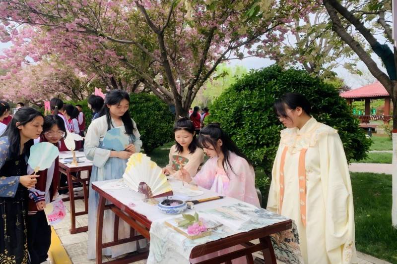 西咸新区泾河泾华学校举行校园樱花诗会游园活动,诗歌、音乐、书画、舞蹈……汇成了一幅美妙的音诗画。