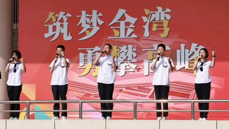 西咸新区沣东高新学校举行 “挺立民族脊梁 共筑强国梦想” 爱国主义教育主题活动。升旗仪式上,学生代表进行主题朗诵和演讲,激励大家珍惜和平、努力学习,为实现中华民族伟大复兴而不懈奋斗。