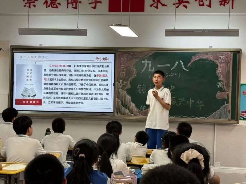 西咸泾河泾华学校开展“铭记历史 勿忘国耻”主题教育,重温历史,激发同学们的民族自尊心、自信心,增强“少年强则国强”的使命感,激励师生将满腔爱国之情转化为工作学习动力,自强自立,奋发图强!