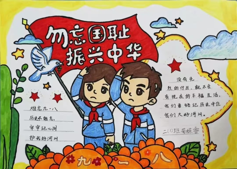 西咸新区秦汉北舍小学通过主题班会、观看爱国影片、爱国诗朗诵、手抄报、黑板报等多种形式,激励师生勿忘国耻、振兴中华。