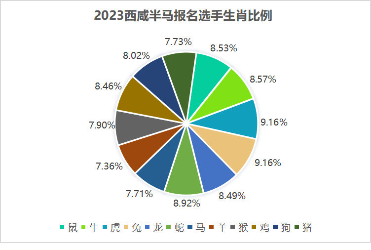 从生肖属性来看,本次赛事属虎和属兔的选手报名数量占比相同,并列第一名。看来今年的本命年的“兔”选手都非常活跃!预祝你们可以在本命年跑的更快,跑的更开心!其他选手也来一起看看你们的属相分别排名第几吧!