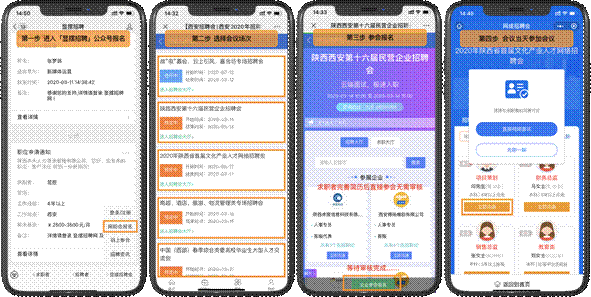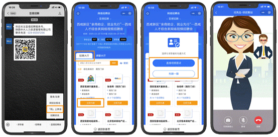 招聘单位参会:进入【显摆招聘】公众号,点击右下角【显摆招聘会】【网招会报名】选择参会场次点击【企业参会报名】等待审核审核通过即可在招聘大厅显示。参会当天进入【显摆招聘】公众号,点击右下角【显摆招聘会】码上参会】识别二维码即可进入会场,在【求职大厅】内与求职者一对一沟通,邀请求职者投递简历,也可查看下载求职者简历,邀请进行视频面试。