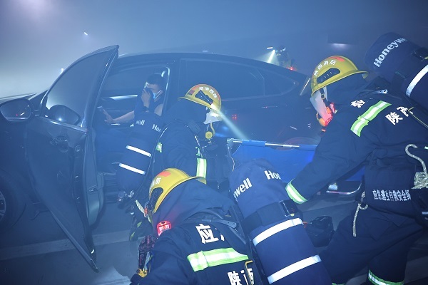 全勤指挥部到场后,根据现场力量情况合理调整作战任务,划分任务区域,组织参战力量科学开展灭火救援行动。演练中立足内攻灭火救援的技战术,设置报警、人员疏散、消防广播和防排烟系统应用、初期火灾扑救,火情侦查、人员初期搜救、初战控火,安全警戒、搜救行动,通信保障、灭火攻防、紧急救助、外立面铺设水带、扑救新能源火灾、移动排烟、扑救外立面火灾等12个科目。