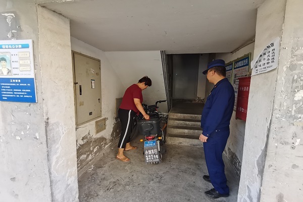 渭城街道消防所联合综治网格员开展电动车专项整治
