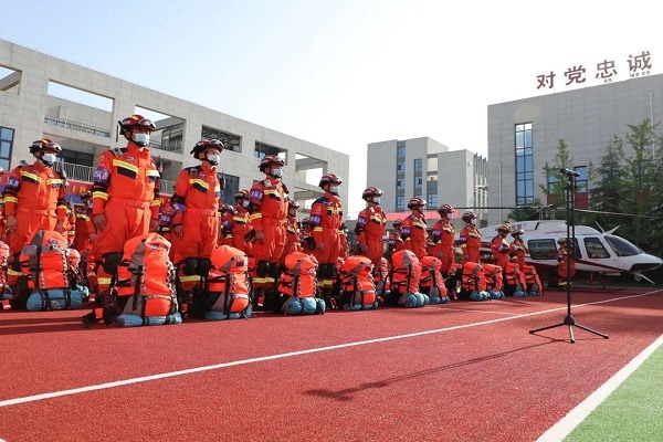紧贴实战 厉兵秣马。接到总队命令后,西咸消防支队迅速启动本级地震灾害一级响应,召开灾情通报会,从人员、车辆、装备、行动等环节进行分析研判,对此次跨区域增援命令进行分工部署。按照支队全勤指挥部战时模式,成立地震灾害应急救援指挥部“一部六组”,并第一时间集结支队地震灾害消防救援轻型专业队,共计60人,12车,2犬,携行“管理、搜索、营救、医疗、战勤”五大模块,2652件套器材装备。