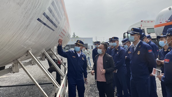 为进一步增强支队全勤指挥部灭火作战指挥能力,强化天然气罐车泄漏事故处置水平,4月29日,西咸新区消防救援支队全勤指挥部值班人员、灭火救援指挥部人员、通信保障分队、战勤保障中队以及辖区大队、救援站业务骨干深入华油运输有限公司开展“六熟悉”工作,实地观摩学习压缩天然气、液化天然气、液化石油气危化品槽车及储罐处置流程。
