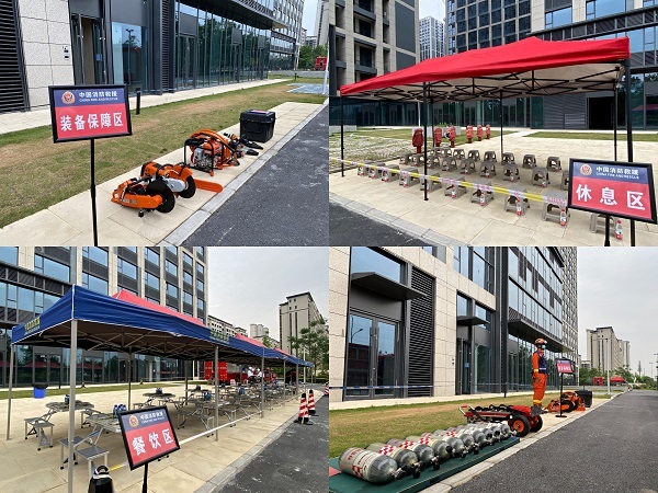 本次演练灾情设定紧贴实战,结合辖区实际情况,模拟中国国际丝路中心高层建筑发生立体燃烧火灾。接到出动命令后,战保中队按照《高层建筑火灾战勤保障预案》,迅速向指定地点开进。到达指定地点后,按照任务要求,依次开展供气保障、装备保障、餐饮保障、生活保障、装备抢修等五个保障科目。徐嘉明副支队长全程观看演练并提出指导意见。