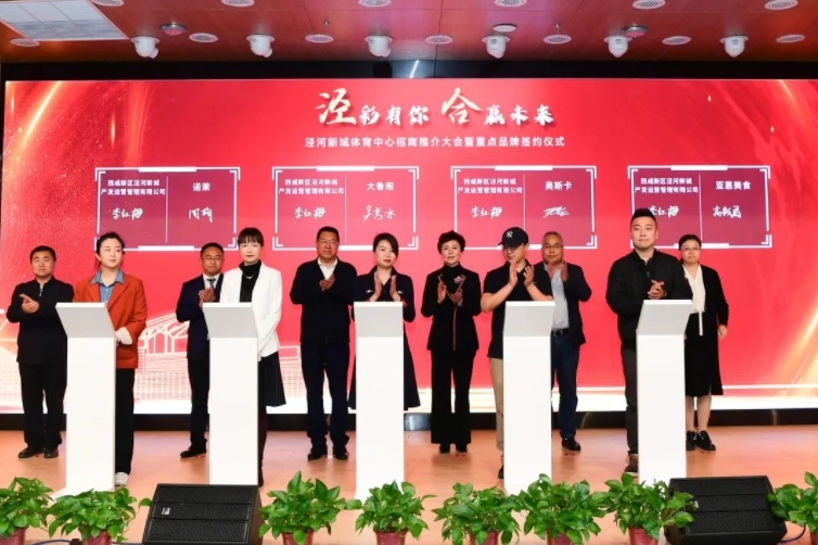 任炳群在致辞中表示,泾河新城体育中心作为新城重点城市配套和文化体育项目,建成投运后将成为新城文旅产业发展的新地标,也将进一步助力新城文旅产业高质量发展。希望各品牌商家能以入驻为新契机、新起点,在泾河新城这片创业兴业的沃土上兴旺发展。泾河新城将发扬五星级“店小二”精神,从快、从简做好入驻商户的证照办理和后期运营服务工作,为大家提供一流营商环境。