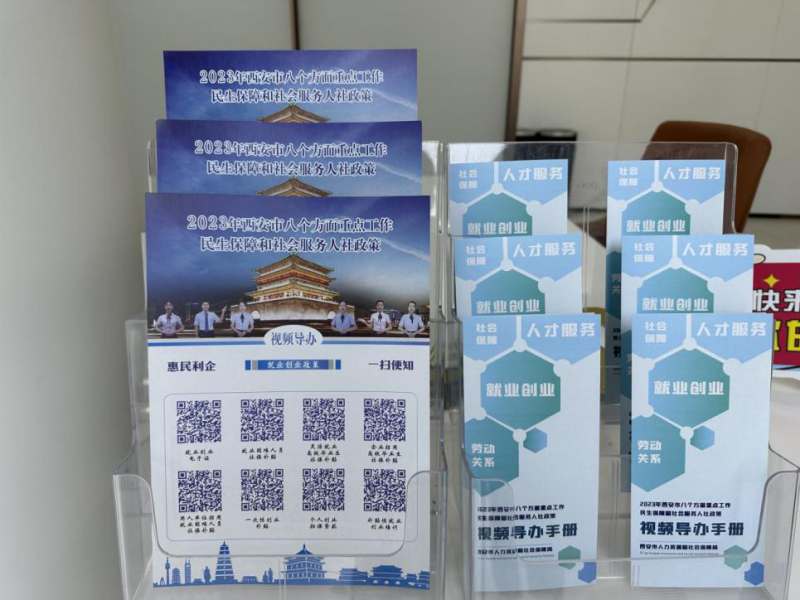 在新区、新城两级政务服务大厅中央屏幕轮动播放的“视频导办”,让群众近距离了解人社政策。就业、人才、社保、劳动关系等业务经办窗口工作人员,给前来办事的群众予以发放宣传折页,并引导群众微信扫码,“面对面”宣传讲解人社政策。