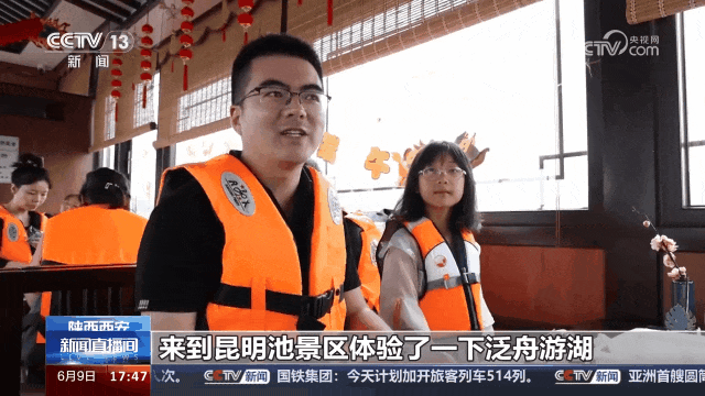 前来体验的游客说:“来到昆明池景区,体验了泛舟游湖,因为是中国的传统节日,我们也体验了包粽子、做香囊的活动,感觉很有意义。”