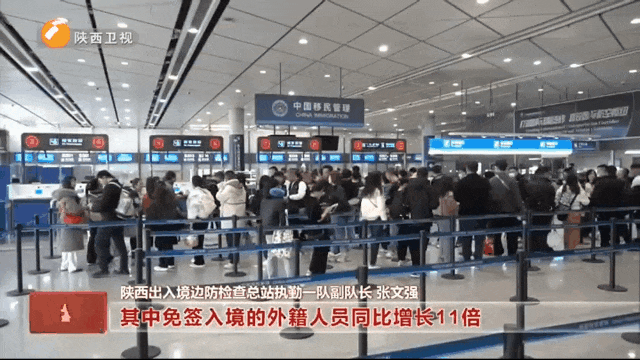 随着首个非遗春节的到来,以及240小时过境免签新政红利释放,越来越多的外国人来到中国感受年味儿。截至目前,春节假期陕西边检总站共查验出入境人员超4万人次,出入境航班290多架次,同比分别增长76%和91%,旅客外出主要是以旅游就业为主,泰国、日本、新加坡成为排名前三的目的地国家。