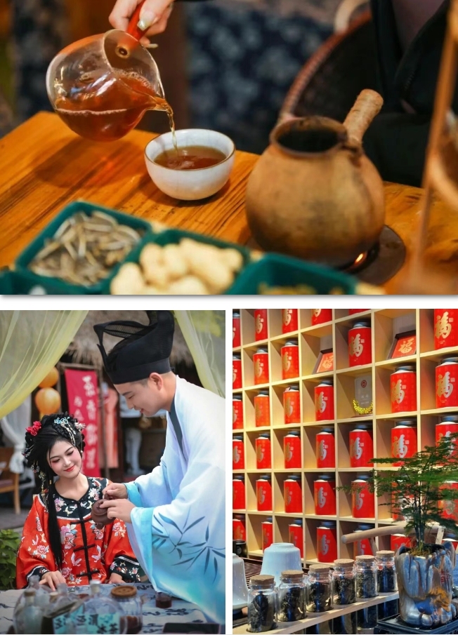 陕西茯茶产销历史悠久。清人“暑气熏泾阳,伏日筑茶忙。坊间压砖石,城外十里香”的诗句,描述了当年泾阳人在三伏天筑茶的繁忙景象。茯茶于盛夏高温中二次发酵,凭借自然生成的金花,酝酿出温润醇厚的独特风味,兼具健脾利胃、解渴消暑等多重功效。