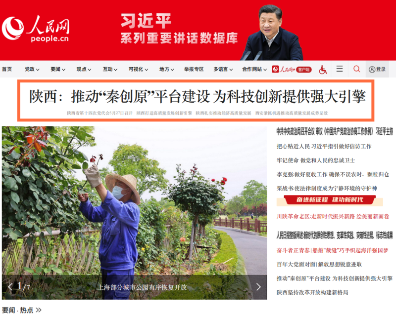 今天,人民网首页头条刊发《陕西:推动“秦创原”平台 建设为科技创新提供强大引擎》聚焦西咸新区作为秦创原创新驱动平台总窗口全力促进产业链、创新链深度融合,推动陕西高质量发展迈出更大步伐。