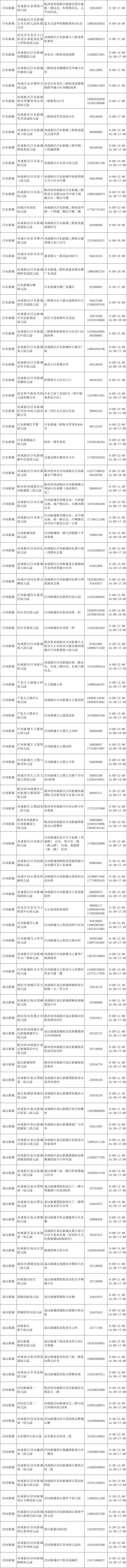 西咸新区2024年秋季幼儿园招生咨询信息一览表