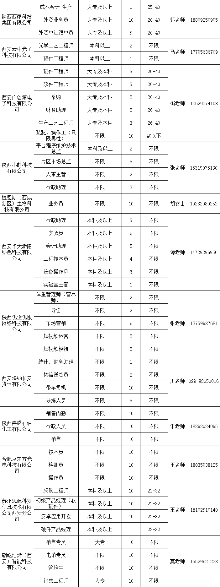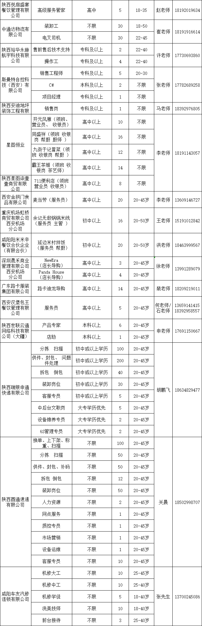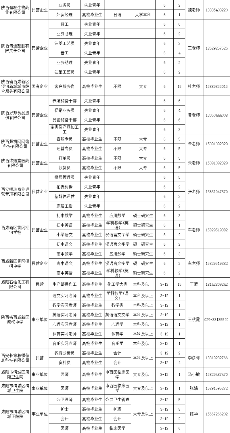 2024年西安-咸阳一体化第一批企业用工岗位