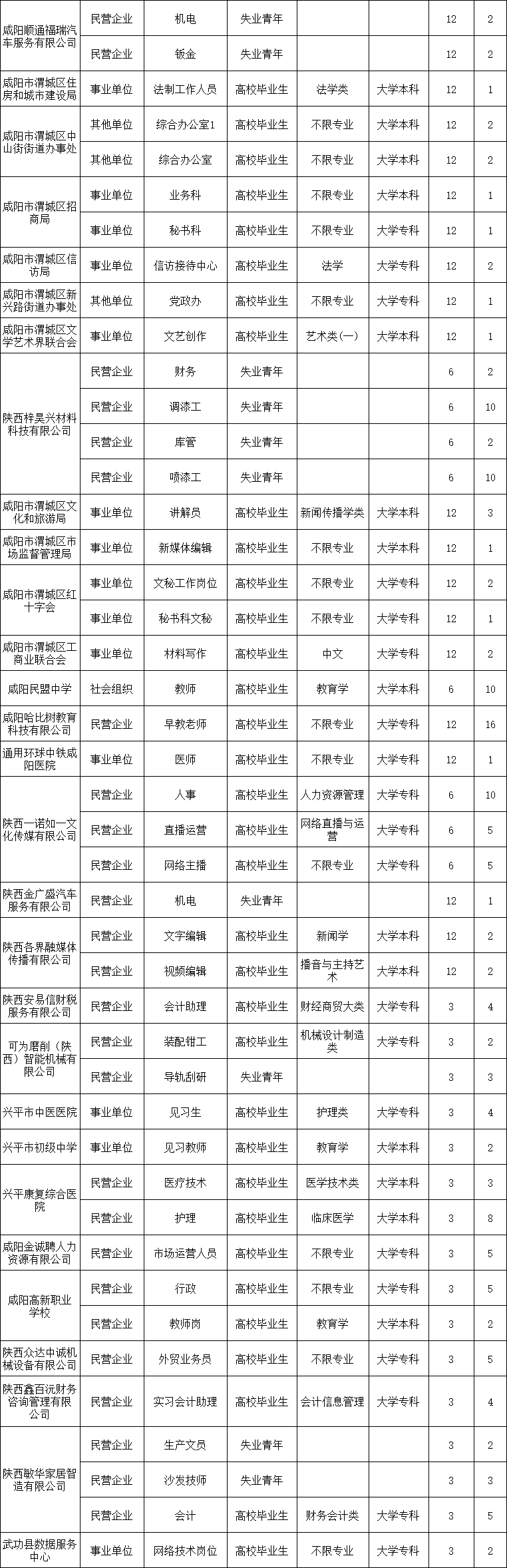 2025年咸阳第一批就业见习岗位