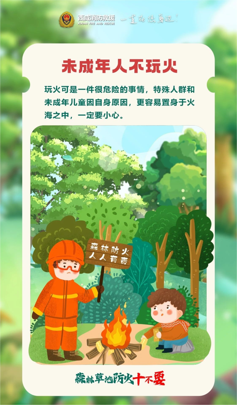 春回大地,万物复苏,然而,天干物燥的气候条件,却使得春季成为火灾高发期,森林草原更是重灾区,一旦失火,将带来不可估量的损失,为了防范此类火灾的发生以下安全事项请注意。