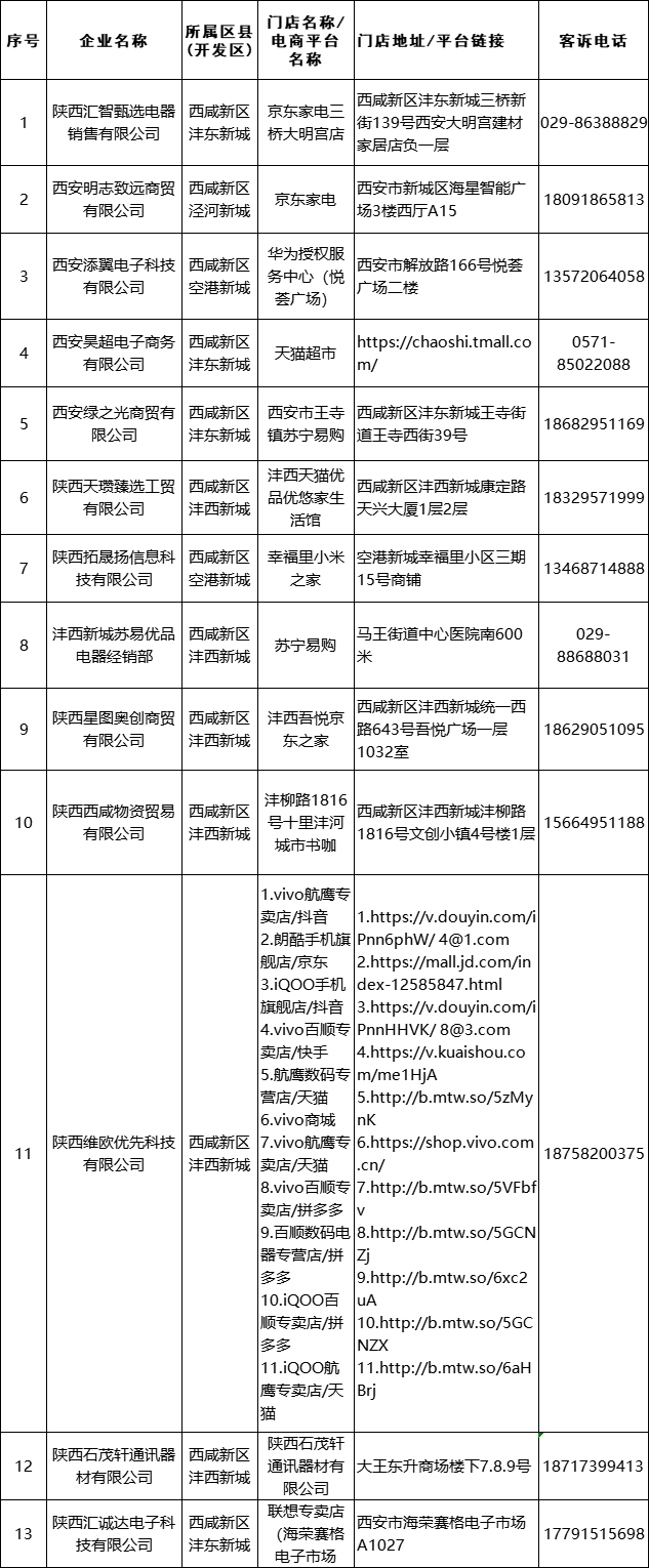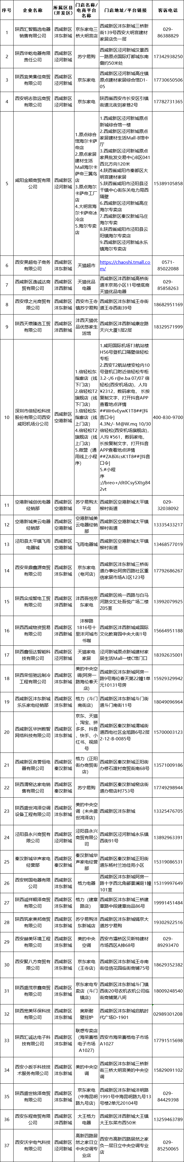 2025年西咸新区家电消费补贴销售企业名单