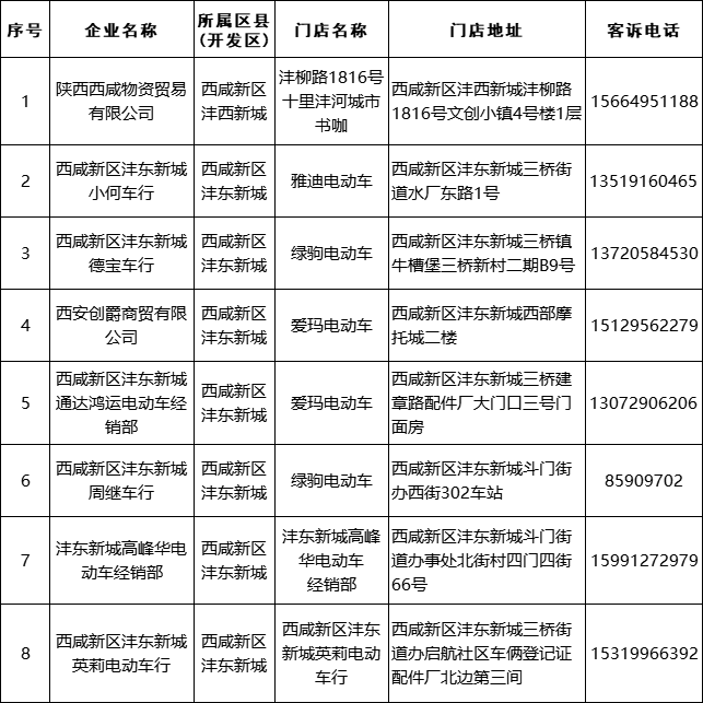 2025年西咸新区电动自行车以旧换新活动参与企业名单