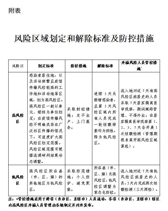 高、低风险区域划定和管控措施见附表。