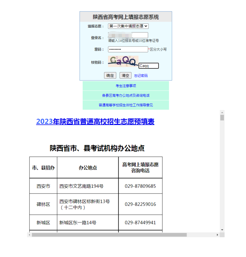 1.考生凭网上报名时所用报名号(14位)或准考证号(10位)及密码登录网上填报志愿系统,网址为陕西省教育考试院门户网站(https://www.sneea.cn)或陕西招生考试信息网(https://www.sneac.com)。