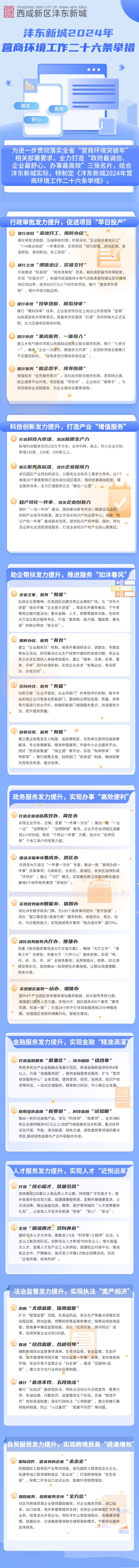 此次发布的《沣东新城2024年营商环境工作二十六条举措》,主要围绕科技创新、政务服务、金融服务、人才服务、自贸服贸等8个方面精准发力,将为区域重点项目建设和产业集聚发展提供有力支撑。