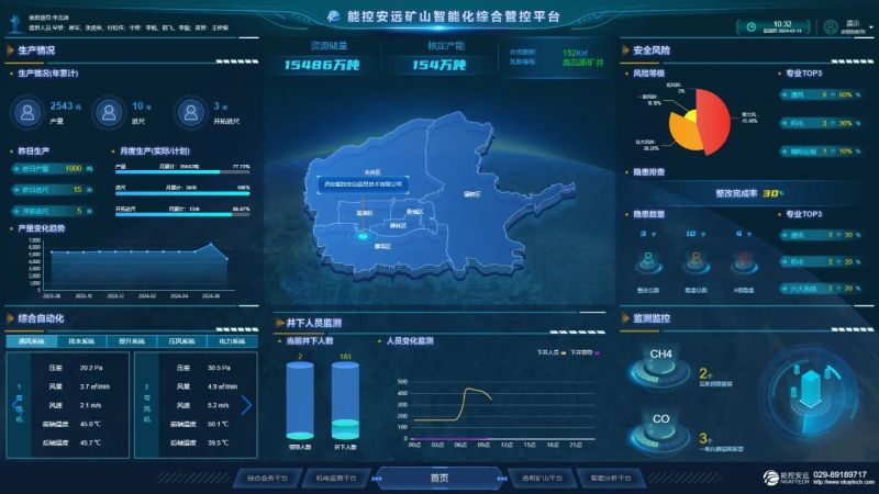 “综合管控平台已基本涵盖了我们目前在矿内所涉及的所有业务,例如生产、安全、经营、地测、通防,同时,可以对矿山的通风、排水、供电等机电数据进行实时监测预警。”企业软件研发部人员介绍,综合管控平台对矿内的生产推进情况以及安全管理情况都可以通过三维立体的形式直观呈现出来,极大提升了矿山的生产效率和安全水平。