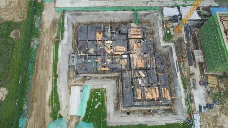 目前,项目1号楼桩基工程及深基坑工程验收完毕;3号楼连廊一层钢筋模板制作安装已完成98%;4号楼一层拆模完成,二层浇筑完成,三层柱箍筋套放完成。