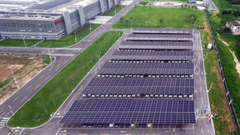 技术创新是该项目的一大亮点。项目采用“自发自用”模式,使用三一硅能新能源有限公司自主研发的高效大组件625Wp单晶硅电池及行业内最大型号组串逆变器320kW,确保了系统的高效稳定运行。同时,巧妙利用园区屋顶及停车场空间,部署了高效单晶硅光伏组件,将太阳能转化为源源不断的清洁电力,不仅实现了能源的最大化利用,还赋予了园区新的视觉美感,成为一道独特的风景线。