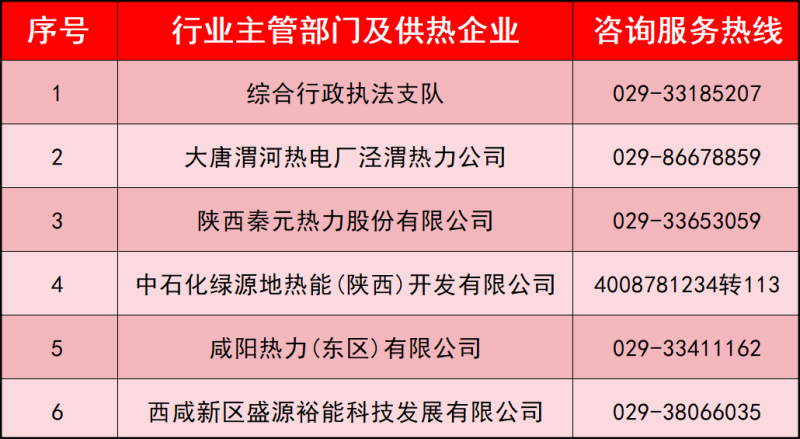 温馨提示:为保障好群众取暖工作,秦汉新城相关部门和供热企业开通了咨询服务热线,“供暖管家”随时“在线”。在供暖过程中,如您遇到温度不达标、供热不均衡等问题,或其他突发情况,可及时拨打电话反映或投诉。