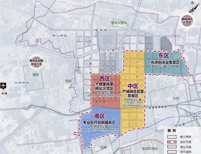 在地处战新产业带核心区域的塬北片区,秦汉新城大手笔规划的西咸新区·秦汉大健康产业园,总面积达13.72平方公里,全面整合区内重点项目、平台、企业等优势资源,围绕医用新材料、药物研发、创新医疗器械、智慧医疗服务4大医工产业方向,构建医、产、研融合发展格局,着力打造西北地区领先的医工产业生态体系。