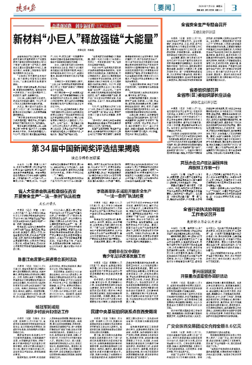 日前,《陕西日报》刊发报道《新材料“小巨人”释放强链“大能量”》,聚焦西咸新区秦汉新城产业创新发展。
