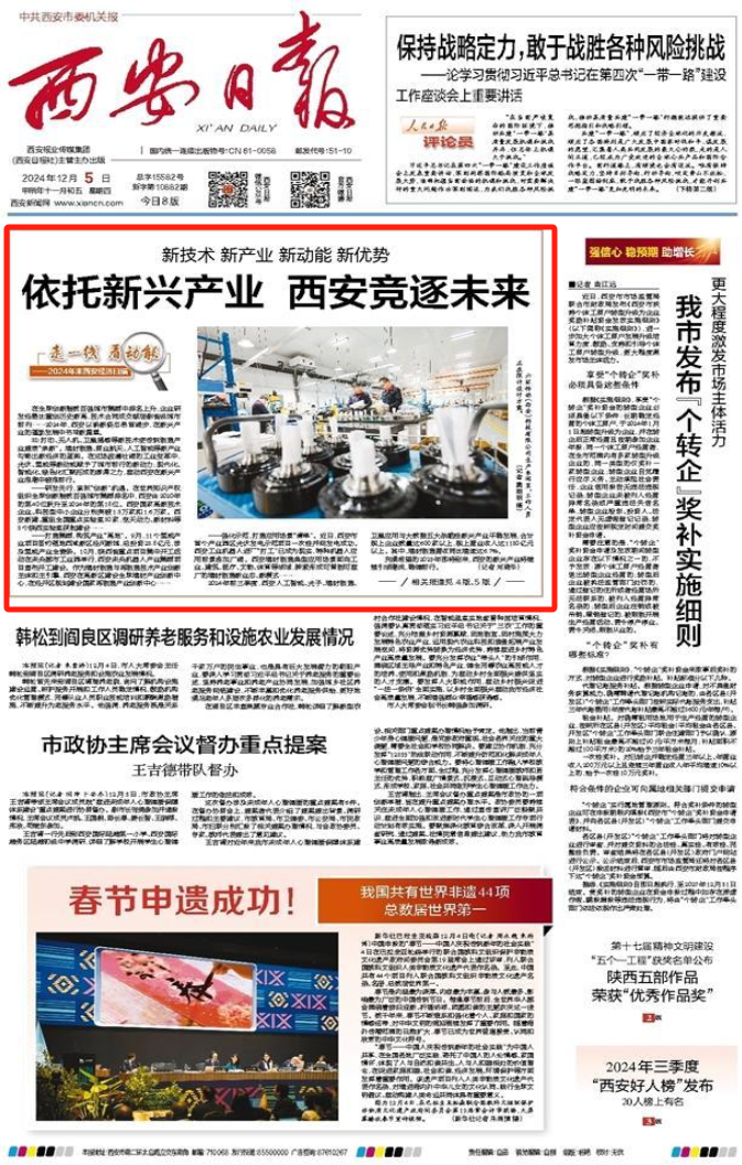近日,《西安日报》头版头条刊发报道《依托新兴产业 西安竞逐未来》,关注西咸新区沣西新城入区企业六环传动(西安)科技有限公司为机器人制造灵活“关节”加速批量生产,摆脱了对国外产品的依赖,助力西安机器人产业发展。