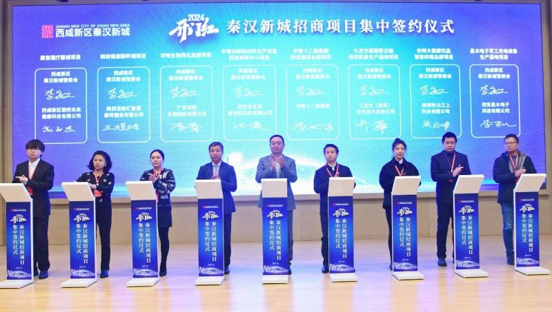 3月1日,半导体级硅材料生产设备科技创新中心、沣舟航空航天科技产业基地等40个围绕主导产业精准招引的产业项目签约落地,总投资152.8亿元。这些涵盖先进制造、大健康、光伏新能源等领域的产业项目,打响了秦汉新城2024年招商引资“开门红”第一枪。