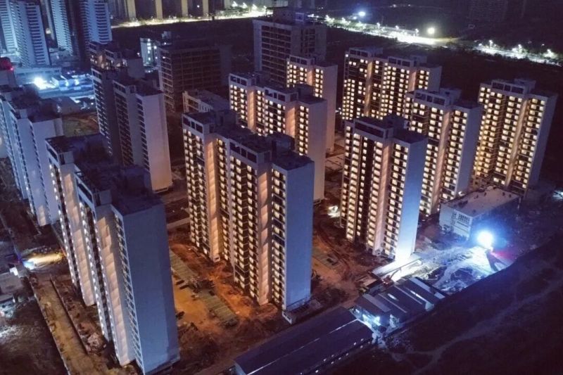 夜幕降临,萧何路安置房项目、蒋刘村安置房项目建设现场,30栋住宅楼及配套建筑的一排排窗户透出明亮灯光,清晰勾勒出建筑轮廓,“万家灯火”的温馨家园雏形已显。