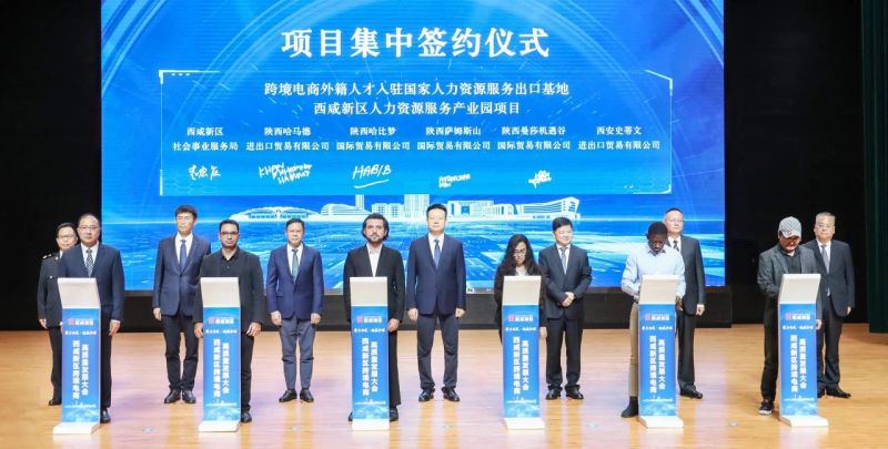 活动现场签署了纵腾空港跨境电商供应链战略备忘录,多家跨境电商外籍人才机构入驻国家人力资源服务出口基地西咸新区人力资源服务产业园,陕西丝路港跨境电商出口交易基地、陕西抖音TIKTOK电商总部、沣东跨境电商直播基地、沣东跨境电商产业园等项目现场签约。