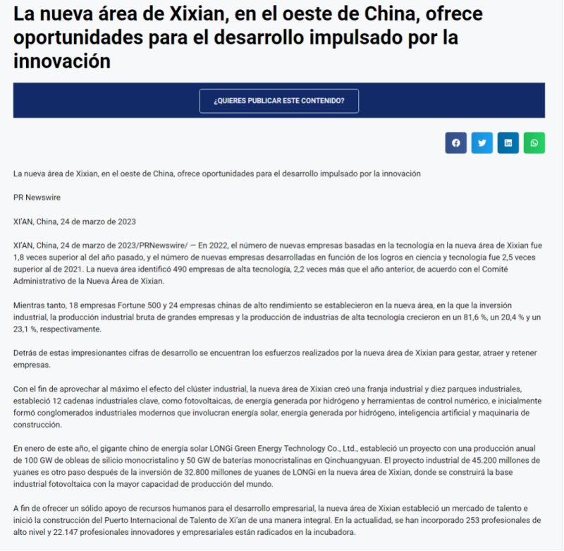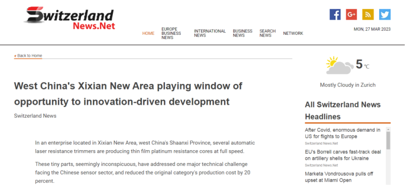 近日,全球通讯社联盟发布文章《West China’s Xixian New Area playing window of opportunity to innovation-driven development》(西咸新区:为中国西部创新发展打开机遇之窗)全球480多家外媒关注,截至3月29日10时总浏览量达到1.8亿人次。