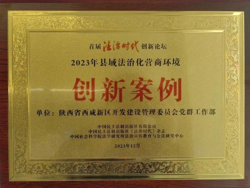 近日,首届《法治时代》创新论坛分论坛在北京举行,西咸新区报送的“聚焦知识产权保护服务秦创原高质量发展”荣获“2023年全国县域法治化营商环境”创新案例。