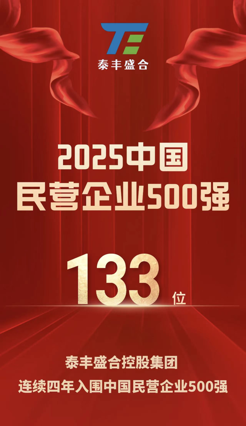 据了解,全国工商联本次开展的第27次上规模民营企业调研,吸引了6379家2024年营业收入达10亿元以上的企业参与,其中营收排名前500位的企业获评“2025中国民营企业500强”。此次泰丰盛合以794.7亿元的营业收入上榜,排名第133位。