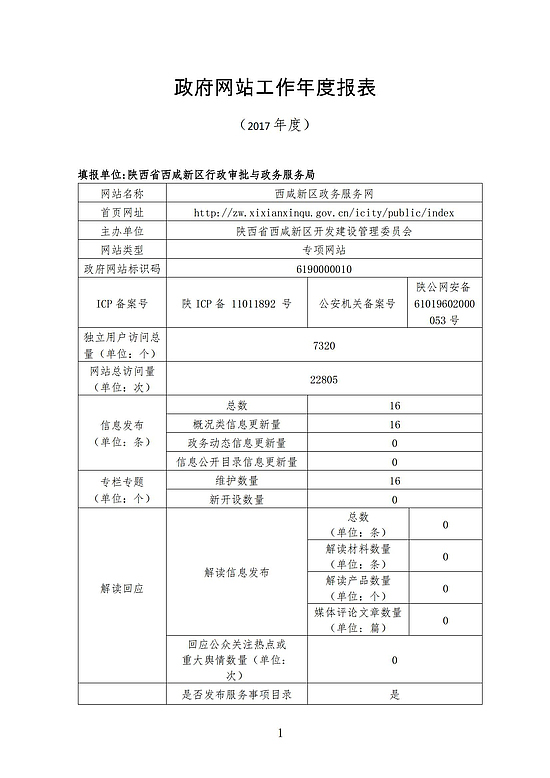 陕西省西咸新区政务服务网政府网站工作年度报表