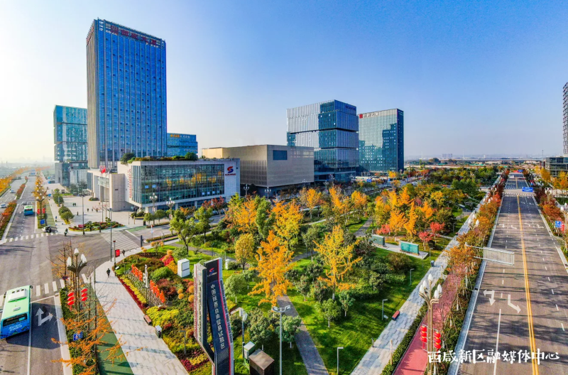 车辆川流不息,高楼鳞次栉比,西咸新区沣东新城的三桥新街已然成为大西安的交通主动脉,车道中央的绿化带和两侧的绿化分隔带让这里在冬日也毫不萧瑟。