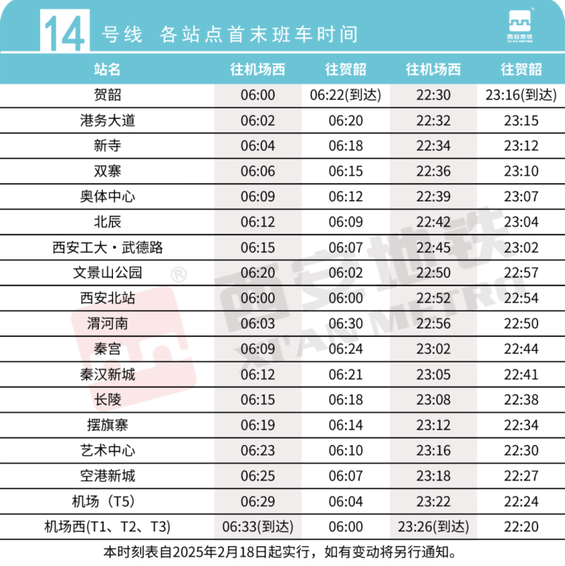 好消息,西安地铁14号线机场(T5)将于2025年2月18日首班车起开通运营。