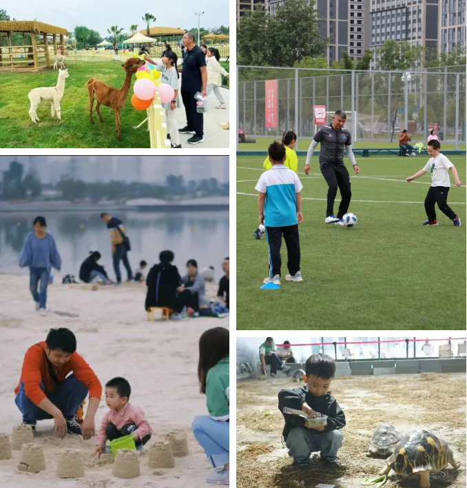 欣赏完生态美景,沣河金湾白沙滩是孩子们童年的“天堂”,在这里共同堆起一座座充满创意的沙堡,让想象和童趣无限释放;在大秦文明园看五光十色的音乐喷泉,还有600斤重巨型陆龟“王子”等各类萌宠陪你一起玩;或者在沣东足球公园来一场家庭运动会……在互动中,培养孩子动手能力和社交技能。