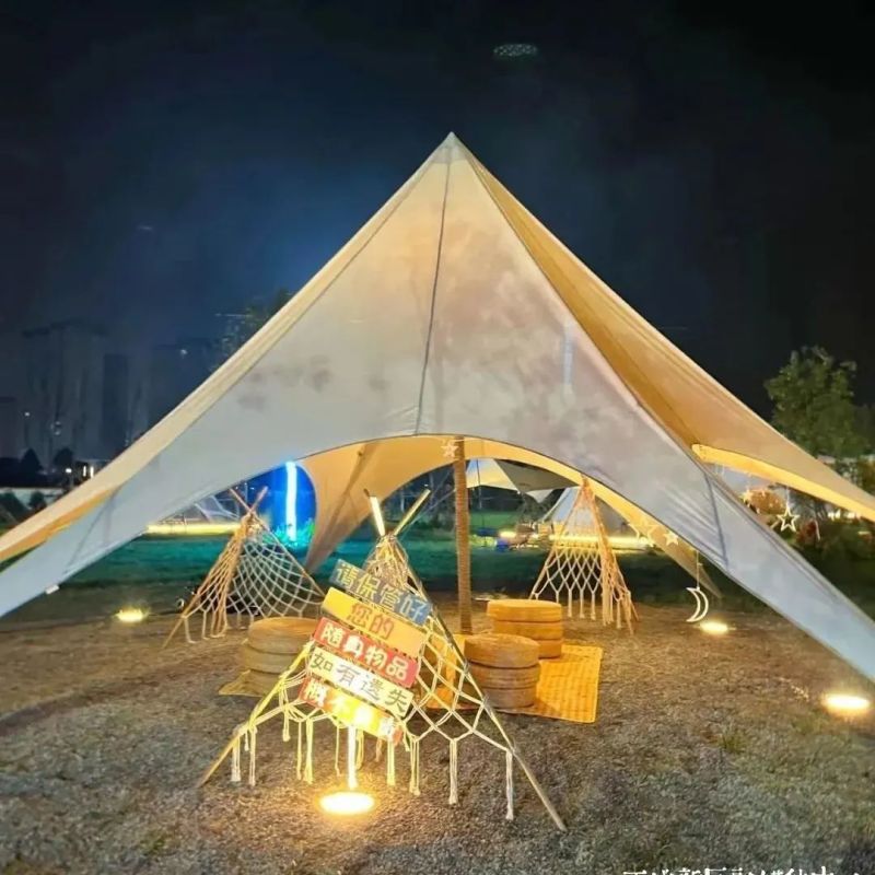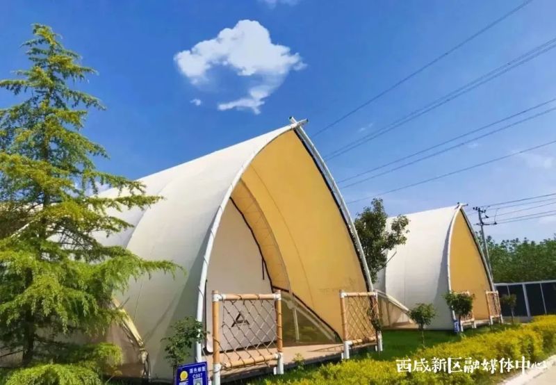 舒适安逸的风,抬头便望见星的夜空,好好享受自如自在的生活,这里为露营爱好者提供一站式服务与全方位的露营休闲新体验,在帐篷露营区,原色篷顶半圆形设计模拟自然中植物的自然状态形成独特的外观造型,“帆船”“贝壳”都是它的别名。