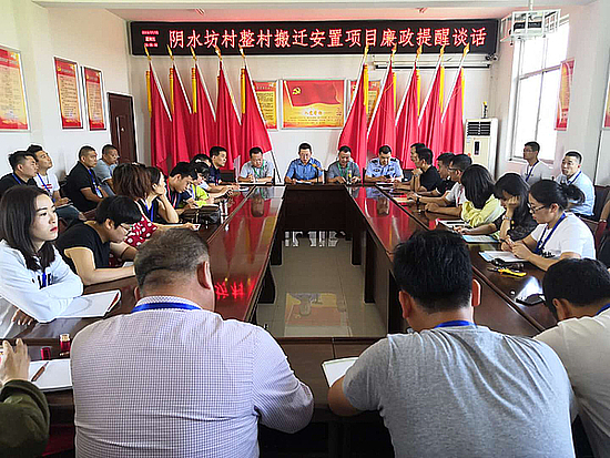 仪式上,国土房管局副局长吴进社同志宣读《高桥街办阴水坊村集体土地上房屋及其附属物征迁补偿安置工作公告及奖励期设置》,高桥街办征迁办主任高凯同志宣读《成立阴水坊村搬迁安置项目指挥部的通知》,西咸文旅集团总经理王琳同志致辞,阴水坊村村委会主任李治省同志进行表态发言。启动仪式后,新城纪委办(监察局)副主任(副局长)徐文伟对全体参与征迀的工作人员进行廉政谈话。