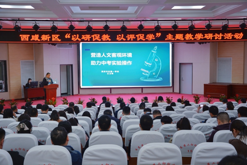 3月27日,由西咸新区教育科学研究院主办、沣东第二初级中学承办的“以研促教 以评促学”---理化生实验操作考试视域下的“教-学-评”一体化教学研讨活动成功举办。西咸新区理化生学科兼职教研员和信息报送负责人、各中学相关业务负责人、学科教研组长等150余人参加。