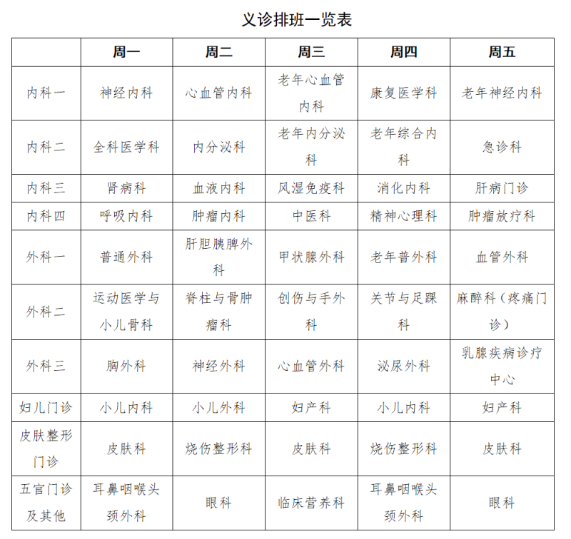 三、义诊科室